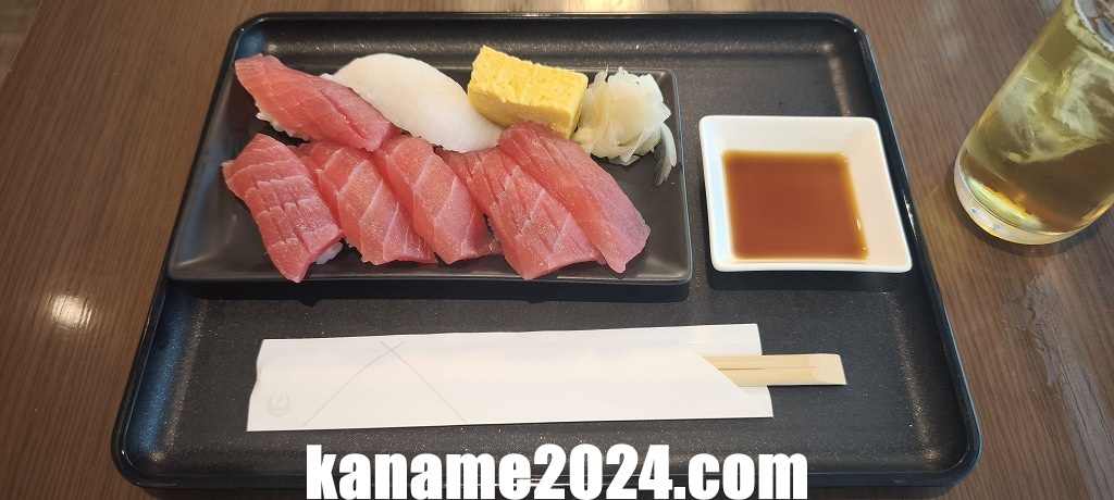 この日は『メバチマグロ天身・近大生まれ 真鯛・玉子』の3種でした。