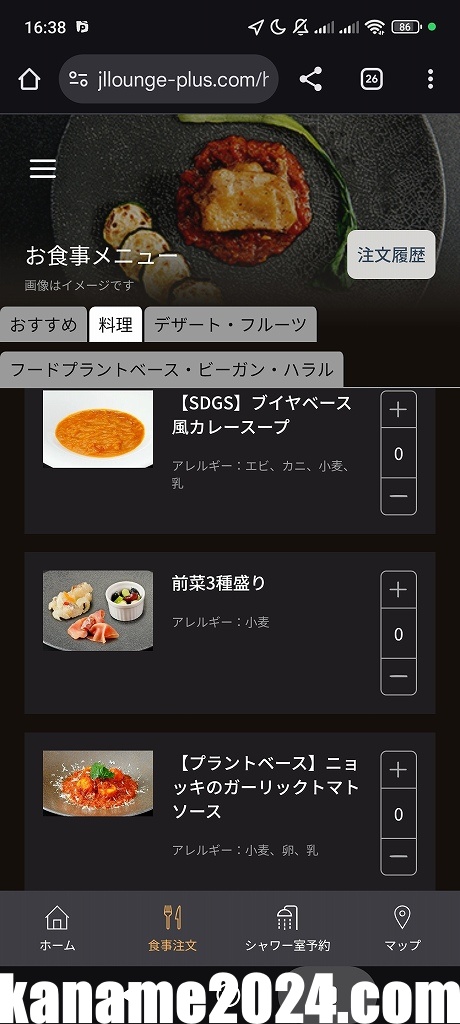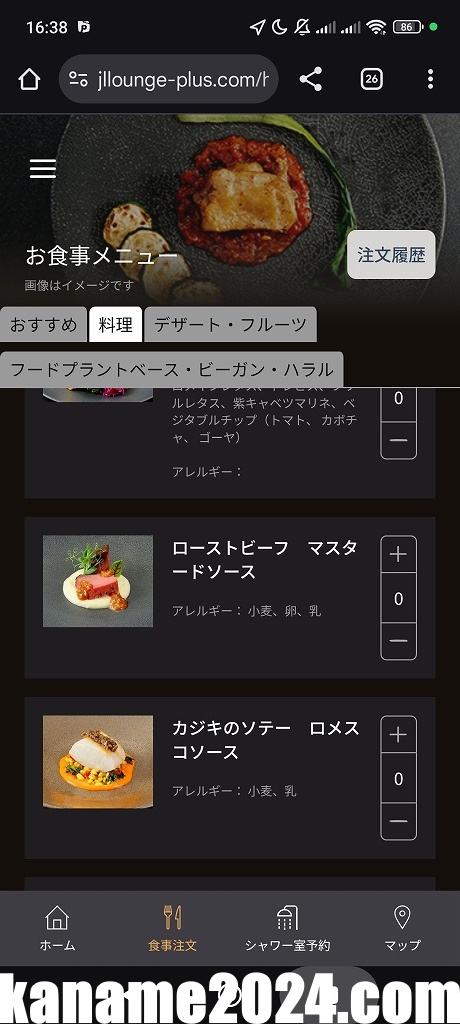 料理の注文については後述しますが、QRコードで読み込んで行います。