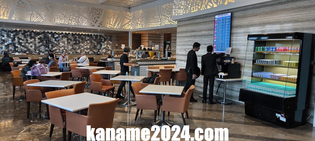 座席数・広さ:広々とした開放的なラウンジ構造で、座席間も比較的ゆとりあり。ビジネス客が中心のため、落ち着いた雰囲気。