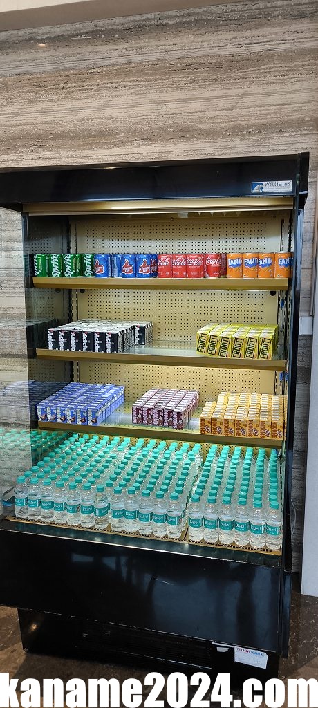 ソフトドリンクも種類豊富で、コーラや炭酸水、ジュース類、ミネラルウォーターなど一通り揃っており、セルフ式で気軽に取れるのも便利。インドの空港というと水回りに少し不安を感じる方もいるかもしれませんが、ここではそうした心配もなく、安心して過ごせました。