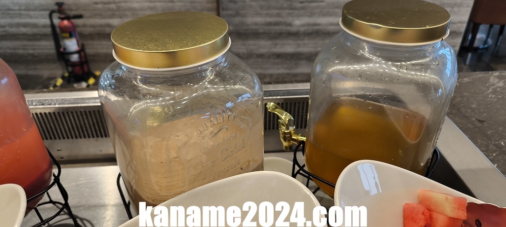 アルコール類に関しては、本格的なバーエリアが設置されており、スタッフがその場でカクテルやウイスキー、ビールなどを提供してくれます。自分は今回は利用しませんでしたが、カウンターにはしっかりとした品揃えのボトルが並んでいて、雰囲気も落ち着いており、ラウンジ滞在をちょっと特別な時間にしてくれそうな雰囲気でした。