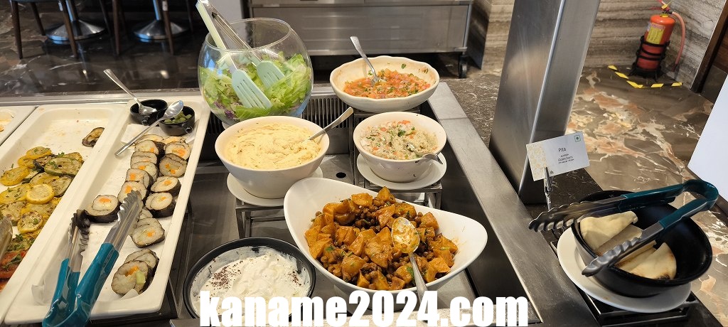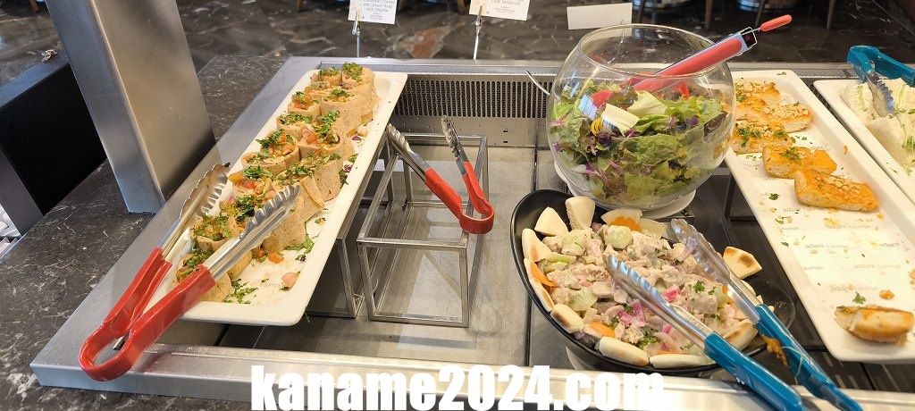 どの料理も補充がこまめに行われており、見栄えも良く、清潔感のあるビュッフェ台でした。食事の内容に関しては、「ラウンジ飯」としてはかなり上質な部類に入ると感じました。