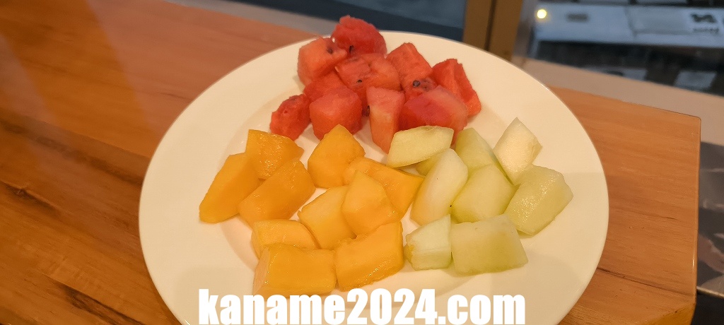 甘いもの好きにはたまらないスイーツのコーナーもあり、ケーキやインド風デザートが並んでいたのですが、自分は控えめに味見程度に。代わりに気に入ってたくさんいただいたのが、フレッシュなフルーツ類。スイカやパパイヤ、メロンなどが冷たく冷やされていて、口直しにも最適でした。