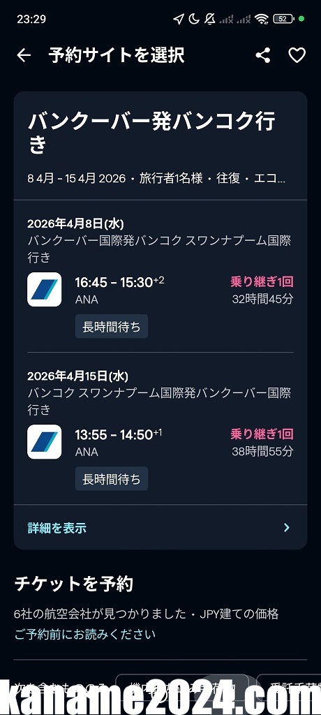 バンクーバー発バンコク行きは、通常10万〜13万円が相場です。今回の75,469円は コロナ前〜円安後を含めても滅多に出ない水準 と言えます。