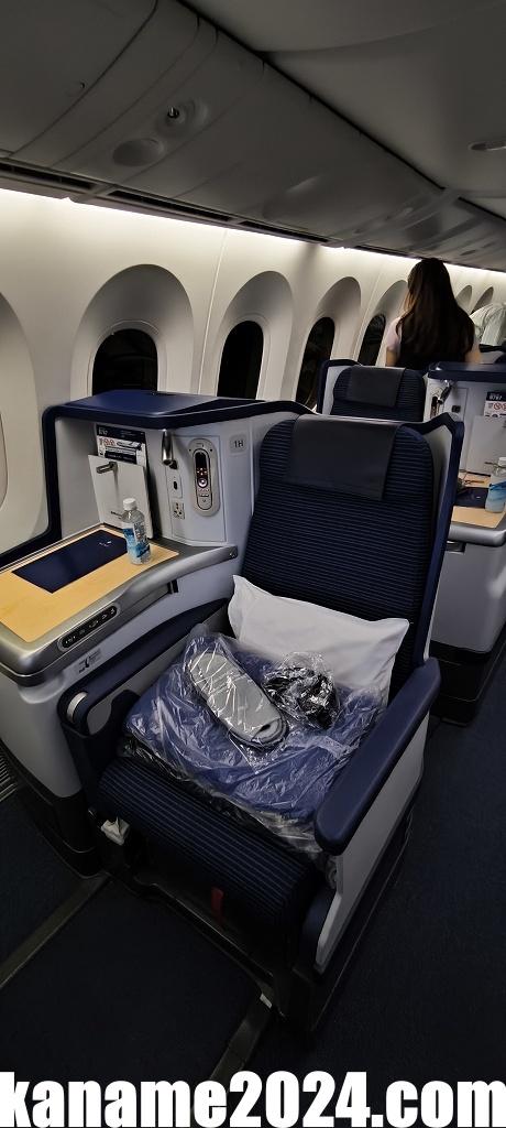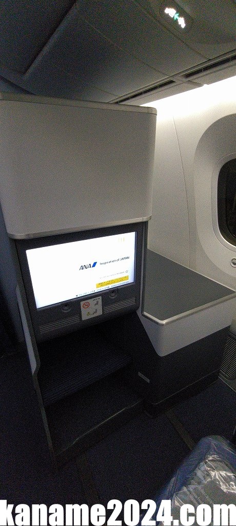 今回の指定は1H席。ANAのボーイング787-8型機におけるビジネスクラス最前列の窓側シート。