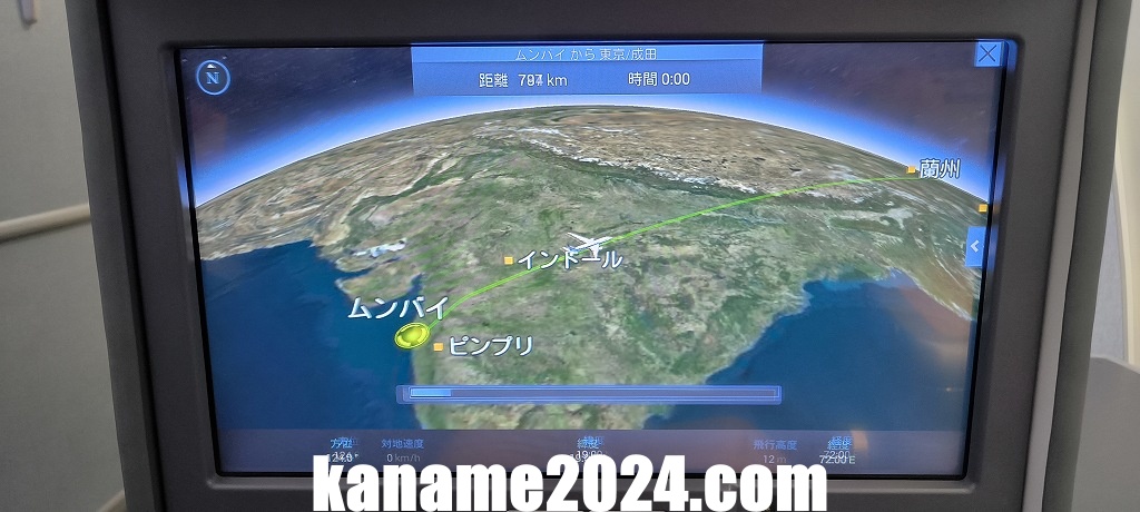 インド・ムンバイのチャットラパティ・シヴァージー・マハーラージ国際空港(BOM)を出発し、成田空港(NRT)へ向かう約8時間半のフライト。