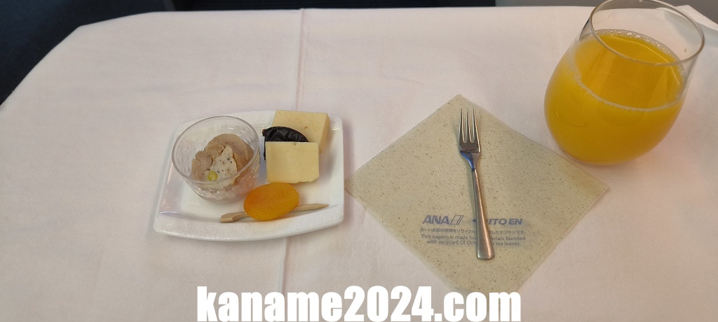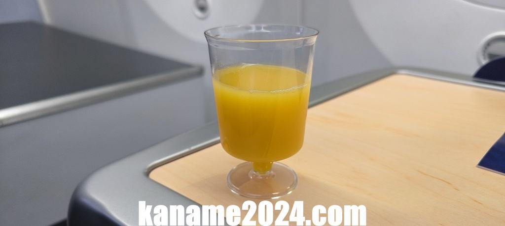 選べるのはシャンパンかオレンジジュース。自分はいつも、オレンジジュースをお願いします。