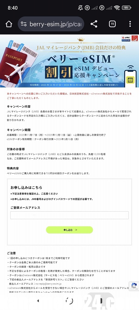 ・JAL専用ページ以外から申し込むと割引が適用されません