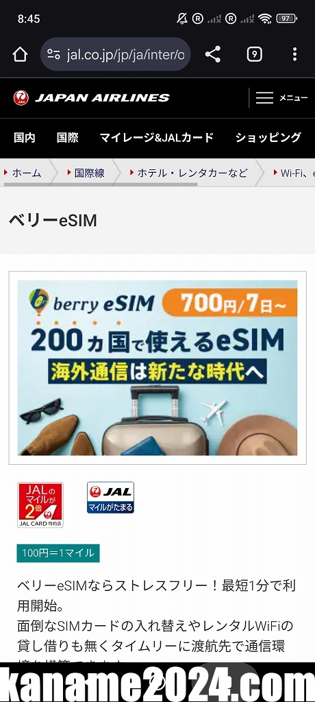 【JAL会員特典】ベリーeSIM®が700円割引!全世界170か国で使えるお得クーポン【2025年最新】