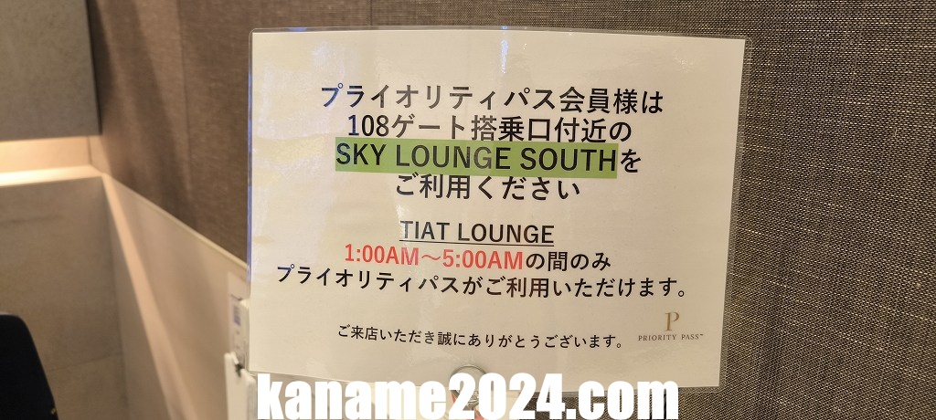 | プライオリティパスでの利用時間 | 午前1:00〜5:00のみ入室可能※時間外はプライオリティパスでは利用不可 |