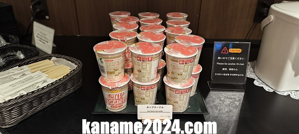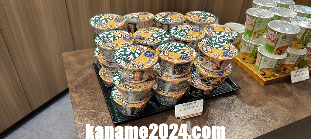 深夜帯ということもあり、食事のラインナップは簡易的な軽食中心でしたが、小腹を満たすには十分な内容でした。サンドイッチ、スナック、カップ麺などのほか、冷蔵ケースにはデザートも用意されています。