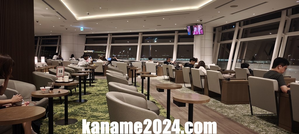 照明も適度に落とされ、深夜帯らしいリラックスした雰囲気。利用客は一人旅やトランジット目的の方が中心で、会話も少なく静粛さが保たれていました。JALファーストクラスラウンジ閉店後の「避難先」として利用するには、ストレスなく過ごせる環境だと感じました。
