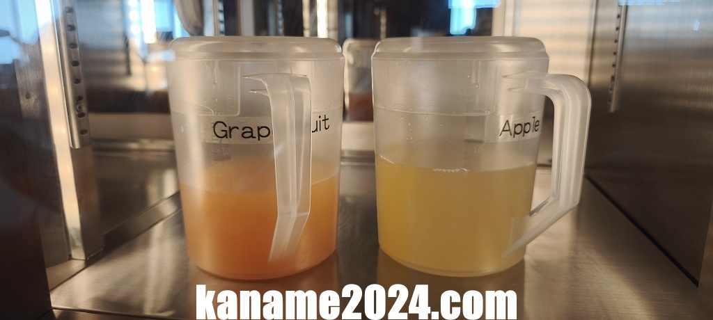 自分はグレープフルーツジュースをいただきましたが、爽やかな酸味と果実感がちょうどよく、朝や軽食の合間に飲む飲料として最適と感じました。