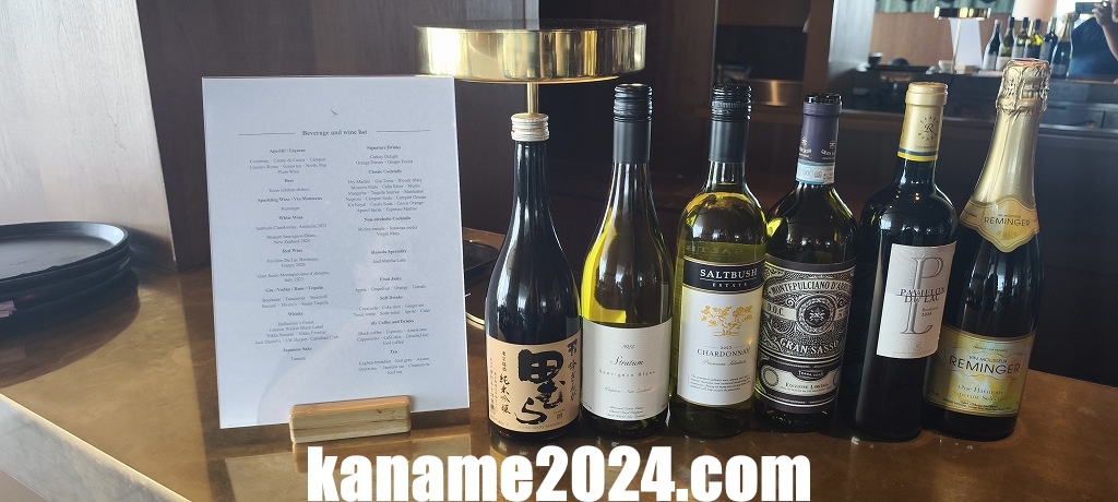 キャセイラウンジのドリンクは、バーサービスとセルフサービスが併用されており、種類も豊富です。自分が好んで飲んだグレープフルーツジュースも自然にリストに入る、バランスの良い構成でした。