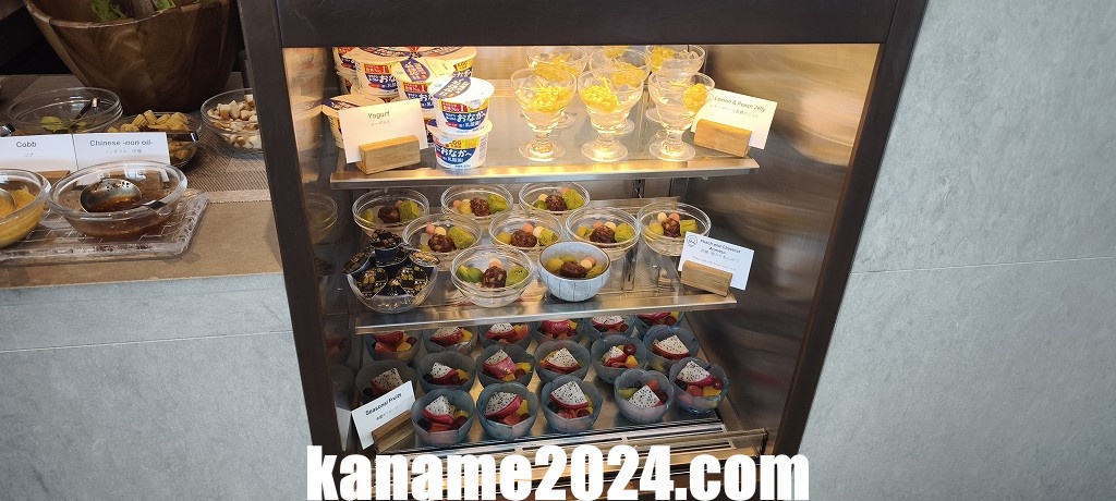 ヌードルバーだけでなく、ビュッフェ形式のFood Barも併設されており、サラダ、コールドカット、チーズ、ペイストリー類、フルーツ、マリネ料理、デザートなど、軽食や前菜的な品揃えが補完的に用意されています。