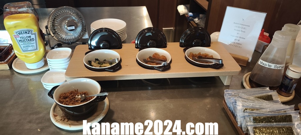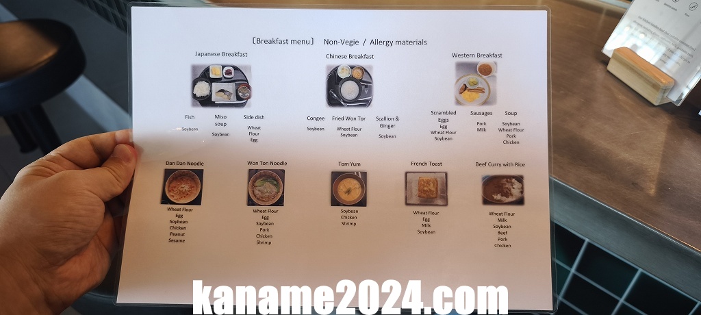 朝食時間帯には、和食・中華混在の朝食メニューも提供されており、和食のおかずやトースト、卵料理、パン、スープ類などもあります。
