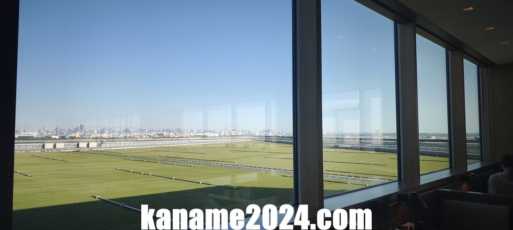 景観・窓:窓面が広く、駐機場・滑走路を眺められる設計。採光も意識された作り。