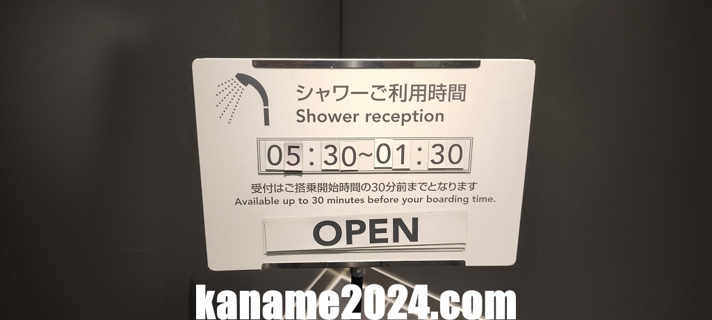 入口付近のカウンターで受付を済ませ、順番が来れば利用可能。室内は清潔に保たれており、アメニティも充実しています。シャンプー・コンディショナー・ボディソープは日本製ブランドを採用しており、使用感も良好。タオル類は厚手で吸水性が高く、フライト前に快適に整えることができます。長時間フライト前や、夜行便に乗る際には特にありがたい存在です。