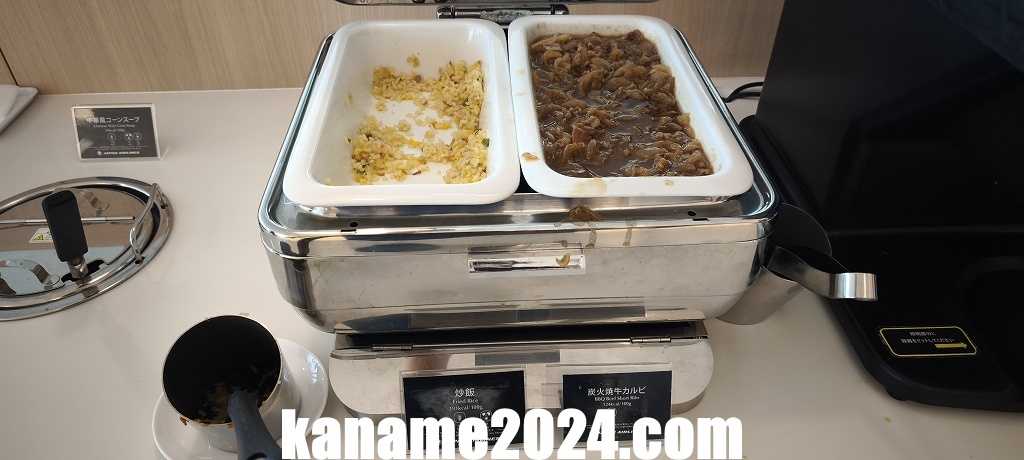 サクララウンジのフードといえば、やはり名物の JAL特製カレー。今回も多くの利用者が列を作っており、変わらぬ人気を実感しました。カレーはコクがあり、程よいスパイス感で、ラウンジ滞在中につい一度は食べてしまう定番メニューです。