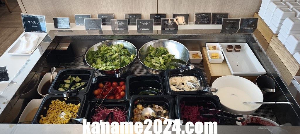 以前ファーストクラスラウンジで味わった充実度には劣る部分もありますが、サクララウンジは全体として「食事の選択肢が多く、安定感のあるバランスの取れた構成」という印象を受けました。