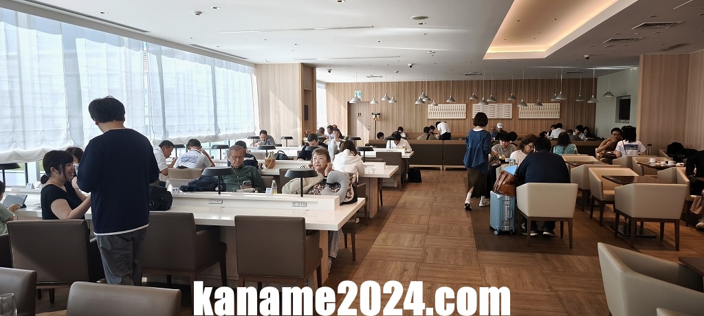 朝の時間帯に訪問しましたが、下階のサクララウンジ本体はかなりの混雑で、人の流れが渋滞するほどでした。その点、上階の「サクララウンジ スカイビュー」は、同じ利用客が分散するためか、やや落ち着いた印象。とはいえ、静寂というほどではなく、あくまで「少し余裕があるかな?」程度です。