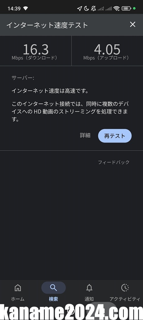 こちらはダウンロード 16.3Mbps、アップロード 4Mbps