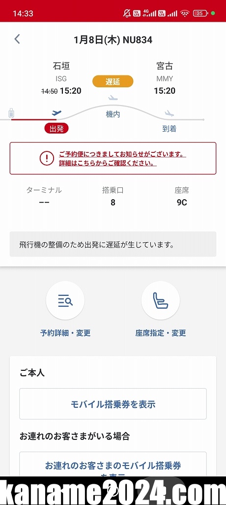 係員に確認したところ、昨日欠航になった機体は無事に修理完了。今日は飛ぶとのこと。