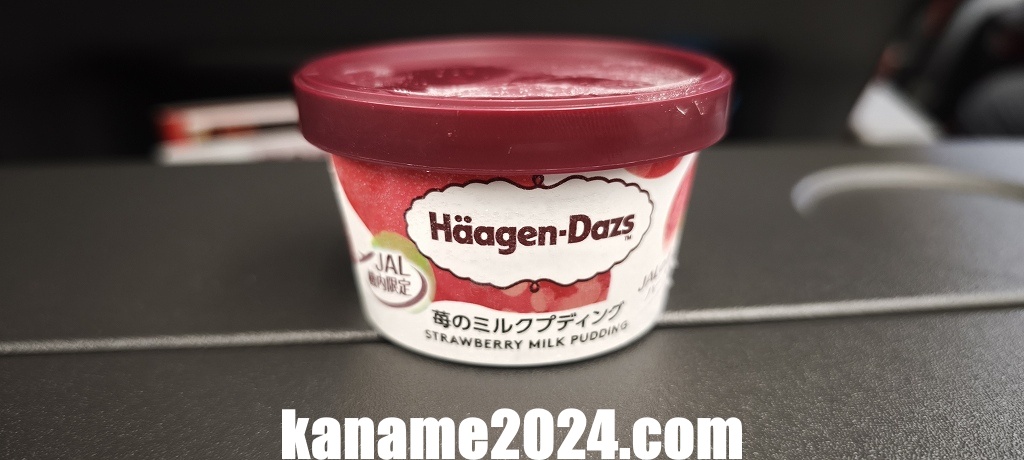 そしてデザートはJALオリジナル・ハーゲンダッツ。苺のミルクプディング味でした。