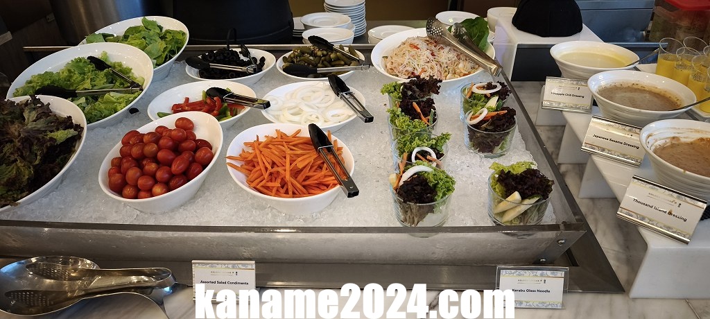- サラダバー(グリーンサラダ、トマト、きゅうり、レタス、コールドカットなど)