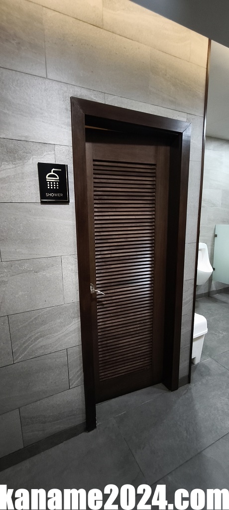 設備としては個室タイプで、広さも十分。タオル類は受付で受け取るスタイルとのことで、バスマットも用意されています。アメニティはシンプルながら一通り揃っており、長時間フライト前のリフレッシュには十分だと感じました。
