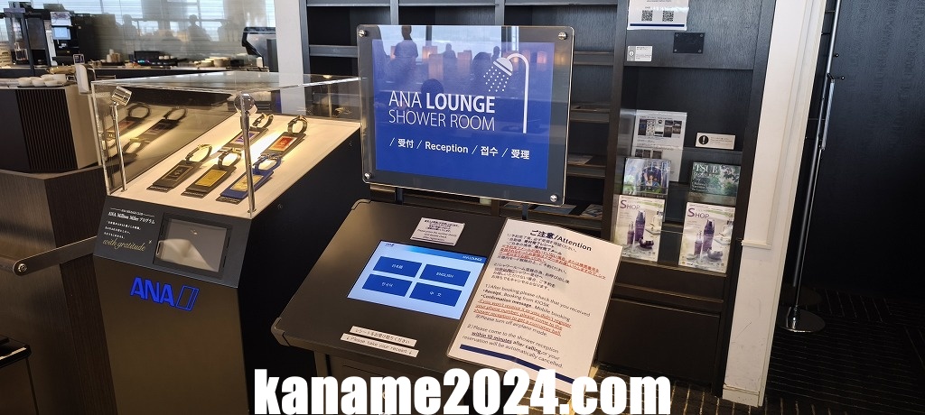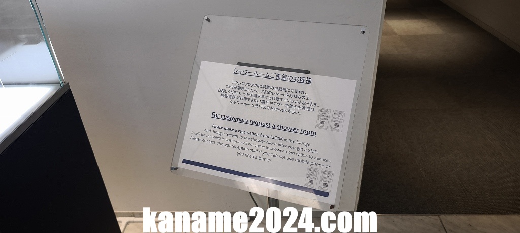 シャワールームはラウンジ入口付近に設置された専用端末から予約が可能です。操作もわかりやすく、スムーズに手続きができました。順番が来ると、登録した電話番号にSMSで通知が届く仕組みになっており、わざわざ確認に行かなくても良いのが非常に便利です。
