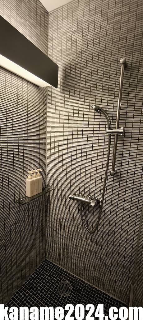 個室は清掃が行き届いており、清潔感が感じられる空間でした。シャンプー・コンディショナー・ボディソープは備え付けられており、アメニティも充実しています。(シャワーキャップとT字カミソリはシャワールームの受付カウンターに置いてあるため、必要に応じて取りましょう。)