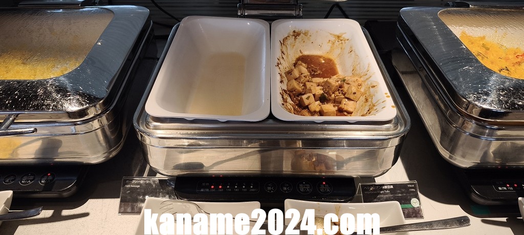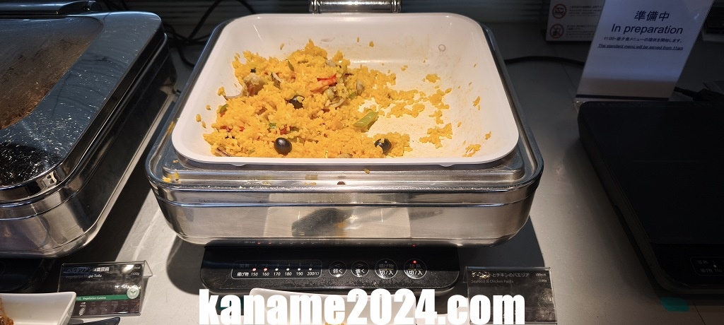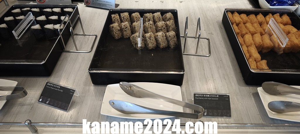 - セルフサービス式の食事カウンター(和洋折衷のビュッフェスタイル)