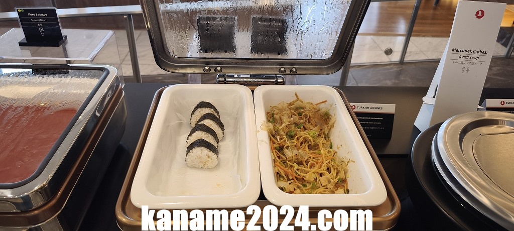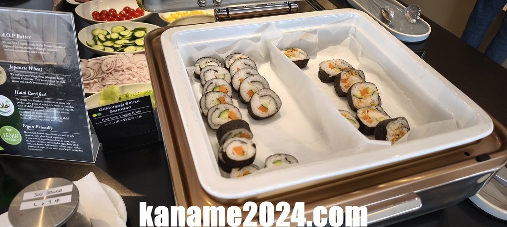 ビュッフェ形式のトルコ・日本・東アジア料理の融合:キンパのようなものもありました。