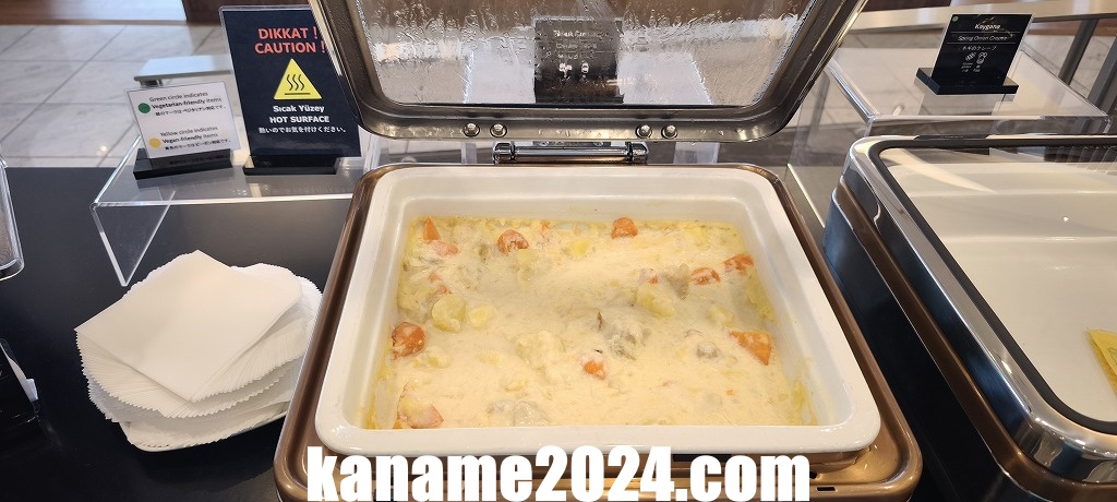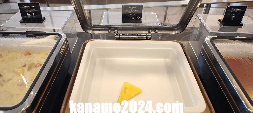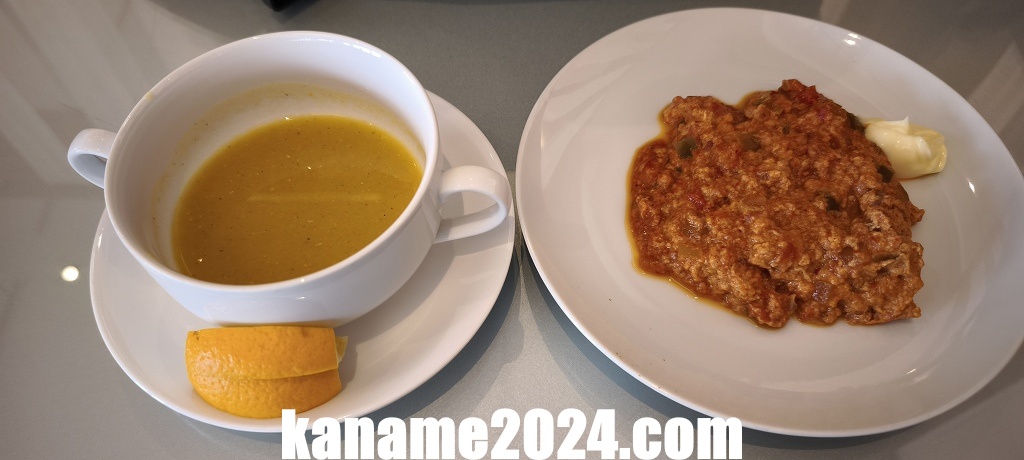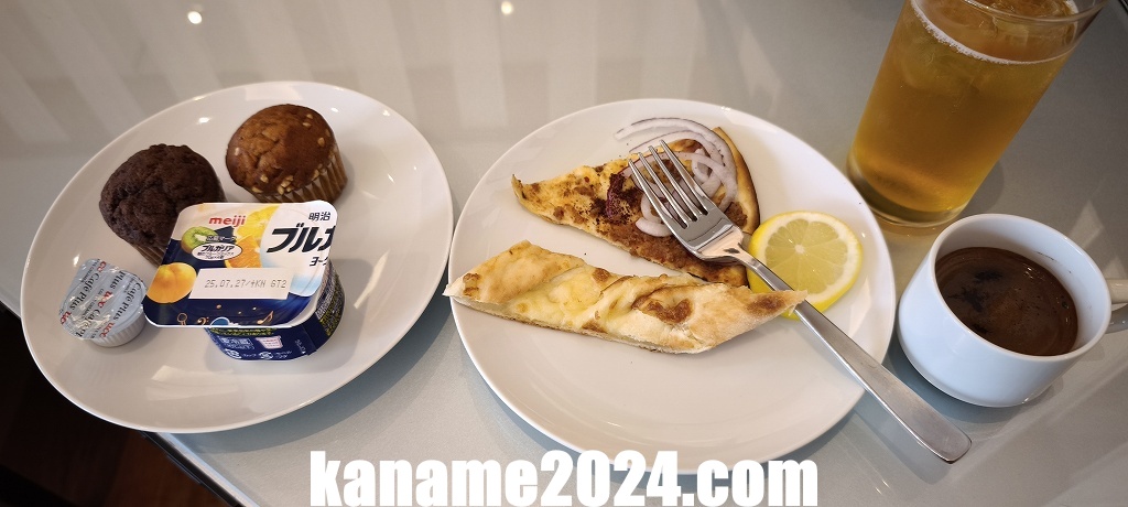 特に印象的だったのは、トルコの伝統的なピザ「ピデ」や、ふんわりと仕上げられたトルコ式オムレツ。日本のラウンジではあまり出会えないメニューで、旅の合間に少し異国の雰囲気を感じられる贅沢さがあります。
