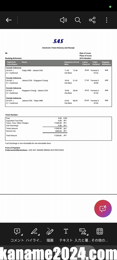 ②ガルーダで東京→ジャカルタ→シンガポール往復(ビジネス)